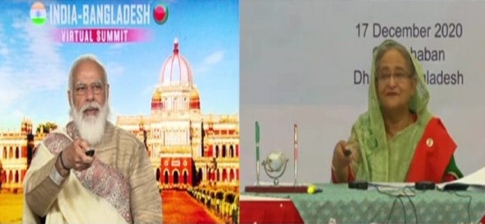 मोदी ने बांग्लोदश की समकक्ष शेख हसीना के साथ ऑनलाइन शिखर वार्ता में यह बात कही . दोनों देशों के बीच तेजी से बढ़ते सहयोग के अनुरूप भारत और बांग्लादेश ने हाइड्रोकार्बन, कृषि, कपड़ा और सामुदायिक विकास जैसे विविध क्षेत्रों में सात समझौतों पर हस्ताक्षर किये . इसके साथ ही सीमापार चिलाहाटी-हल्दीबाड़ी रेल सम्पर्क को बहाल किया गया जो 1965 तक परिचालन में था .