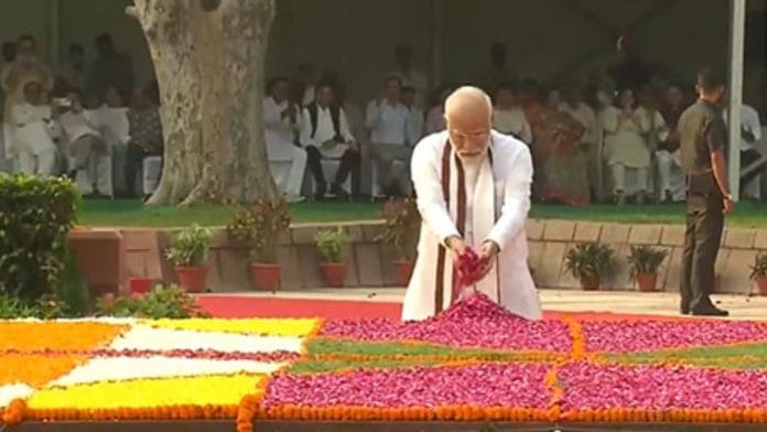 महात्मा गांधी की 153वीं जयंती पर उन्हें श्रद्धांजलि देते हुए पीएम मोदी ने ट्वीट किया, ‘यह गांधी जयंती और भी खास है क्योंकि भारत आजादी का अमृत महोत्सव मना रहा है. हम हमेशा बापू के आदर्शों पर खरा उतरें. मैं आपसे गांधी जी को श्रद्धांजलि देने के लिए खादी और हस्तशिल्प उत्पाद खरीदने का भी आग्रह करता हूं.