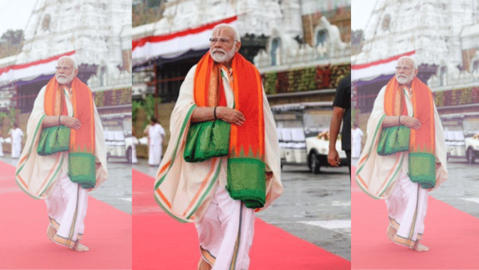 नई दिल्ली: प्रधानमंत्री नरेंद्र मोदी ने सोमवार को आंध्र प्रदेश के तिरुमाला में श्री वेंकटेश्वर स्वामी मंदिर में पूजा की और ”140 करोड़ भारतीयों के अच्छे स्वास्थ्य, कल्याण और समृद्धि के लिए प्रार्थना की.”