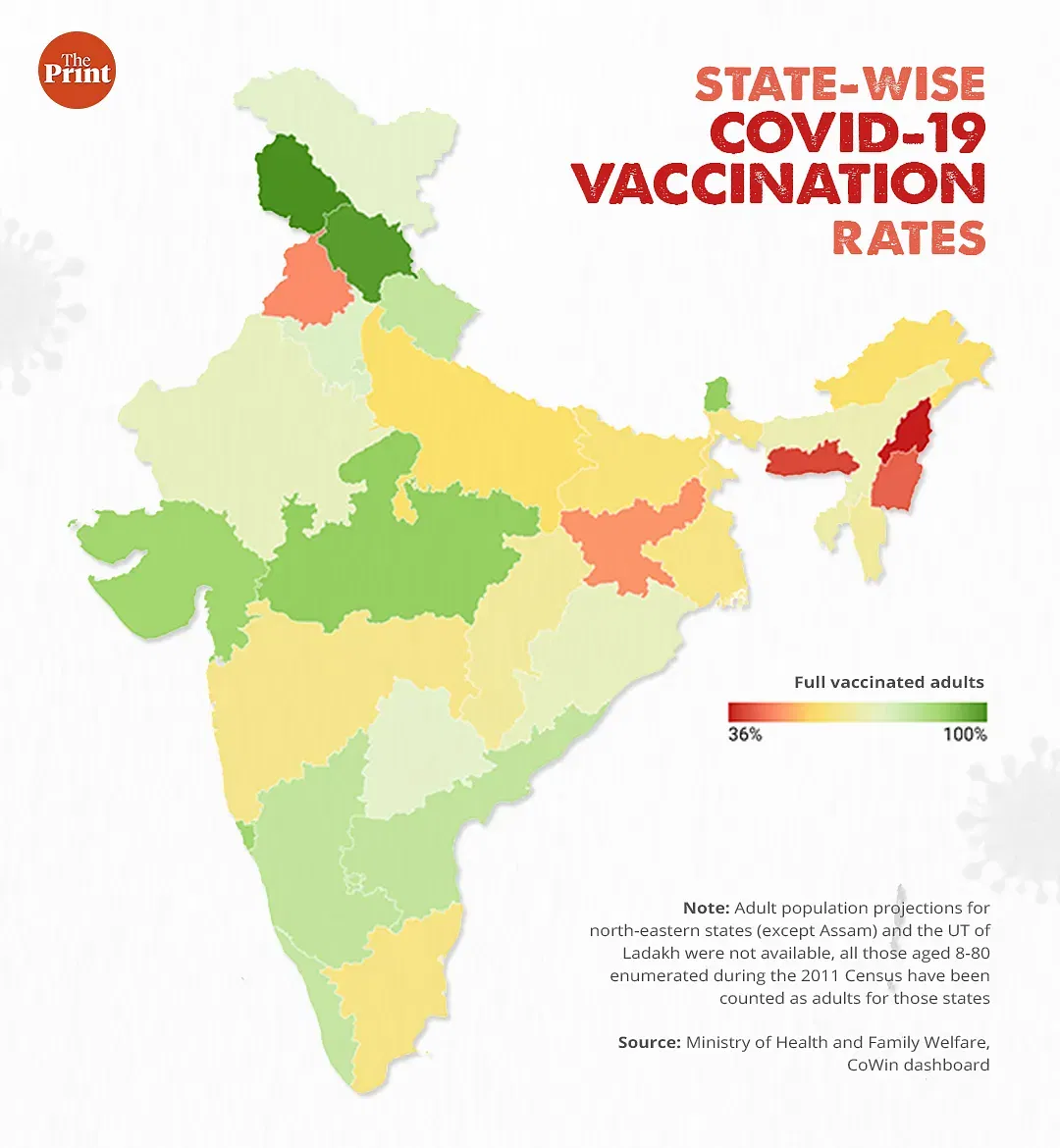 कोविन के आंकड़ों के अनुसार, कोविद -19 टीकाकरण के मामले में मणिपुर तीसरा सबसे कम प्रदर्शन करने वाला राज्य है. केवल 56 फीसदी आबादी को पहली खुराक मिली है, जबकि 43 फीसदी आबादी को दूसरी खुराक मिली है. पोर्टल के अनुसार, राज्य केवल नागालैंड (48 प्रतिशत पहली खुराक, 36 प्रतिशत दूसरी खुराक) और मेघालय (55 प्रतिशत पहली खुराक, 40 प्रतिशत दूसरी खुराक) से बेहतर है.