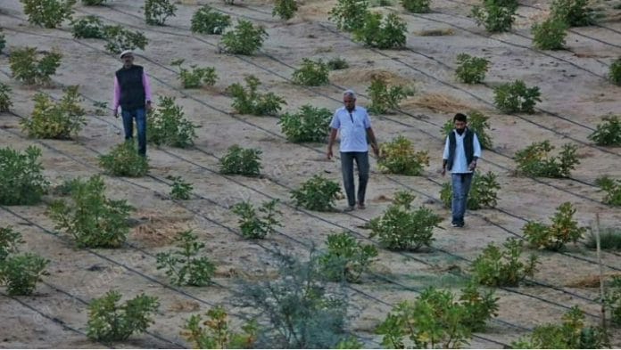 गणपत सिंह ने दिप्रिंट को बताया, ‘पहले, मैं केवल जीरा और बाजरा उगाता था लेकिन कुछ लाभ नहीं मिलता था. मेरी आधी आय तो उत्पादन की लागत होती ही थी. लेकिन अनार उगाना बहुत उपयोगी साबित हुआ. कृषि विज्ञान केंद्र व्यवस्थित तरीके से इसे उगाने में मेरी मदद करता है, इसलिए मेरी फसल निर्यात गुणवत्ता की है और मुझे अच्छी कीमत मिलती है.’ गणपत ने बताया कि जीरा उगाने के दौरान उनकी वार्षिक आय 2-3 लाख रुपये होती थी जो अनार के उत्पादन के कारण बढ़कर 9-10 लाख रुपये हो गई है.