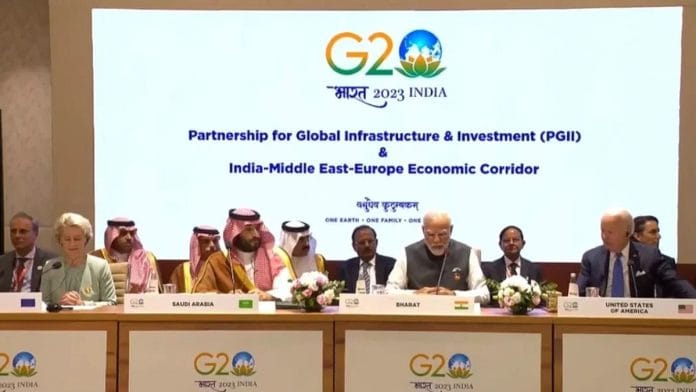 नई दिल्ली: दिप्रिंट को मिली जानकारी के मुताबिक प्रस्तावित भारत-मिडिल ईस्ट-यूरोप आर्थिक गलियारा (आईएमईईसी) जो अरब प्रायद्वीप के माध्यम से भारत और यूरोप को रेल और समुद्री संपर्क के माध्यम से जोड़ेगा, के अभी भी वैचारिक स्तर तक होने की संभावना है, लेकिन भारत पहले से ही इसे पूरा करने के लिए कमर कस रहा है.