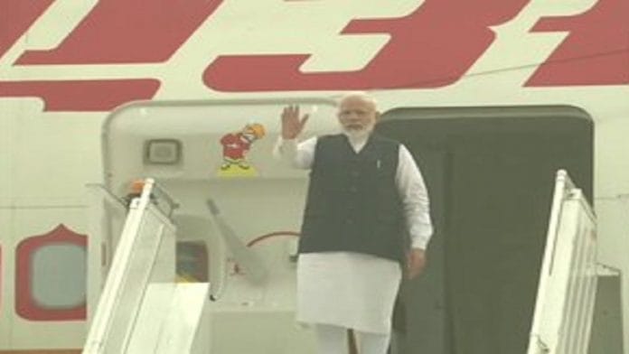 Delhi: Prime Minister Narendra Modi leaves for Brazil to attend the 11th BRICS summit. pic.twitter.com/uVm5Rjo4PS