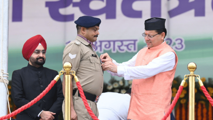 मुख्यमंत्री पुष्कर सिंह धामी ने मंगलवार को 77वें स्वतंत्रता दिवस के अवसर पर परेड ग्राउण्ड देहरादून में इस अवसर पर स्वतंत्रता संग्राम सेनानियों के परिजनों को सम्मानित किया साथ ही फोटो प्रदर्शनी का अवलोकन भी किया. कार्यक्रम के दौरान मुख्यमंत्री ने 05 पुलिस अधिकारियों एवं कर्मचारियों को विशिष्ट कार्यों के लिए मुख्यमंत्री सराहनीय सेवा पदक प्रदान किया. हेड कांस्टेबल चमन कुमार, पुलिस अधीक्षक अमित श्रीवास्तव, पुलिस अधीक्षक रेखा यादव, अपर पुलिस अधीक्षक सरिता डोभाल एवं आरक्षी धीरेन्द्र सिंह चौहान को मुख्यमंत्री सराहनीय सेवा पदक प्रदान किया गया.
