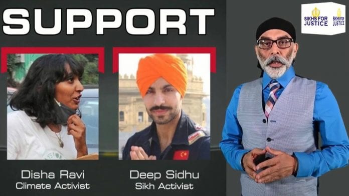 नई दिल्ली: अमेरिका स्थित कट्टरपंथी समूह ‘सिख्स फॉर जस्टिस’, जिसे 2018 में भारत ने प्रतिबंधित कर दिया था, ने बुधवार को यूट्यूब पर एक वीडियो जारी कर इन्वायरनमेंट एक्टिविस्ट दिशा रवि, अभिनेता दीप सिद्धू, वकील निकिता जैकब और श्रम अधिकार कार्यकर्ता नवदीप कौर के समर्थन में आवाज उठाई.