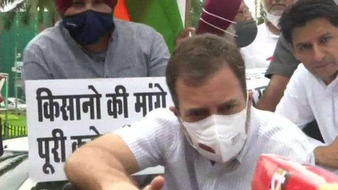 नयी दिल्ली : कांग्रेस के पूर्व अध्यक्ष राहुल गांधी तीन केंद्रीय कृषि कानूनों के विरोध में सोमवार को ट्रैक्टर चलाकर संसद भवन पहुंचे.