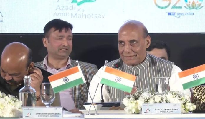 राजनाथ सिंह रविवार को बेंगलुरू में एयरो इंडिया के 14वें संस्करण के कर्टेन रेजर कार्यक्रम को संबोधित कर रहे थे.