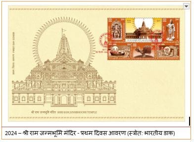 भारतीय डाक ने श्री राम जन्मभूमि मंदिर पर 18 जनवरी को छह डाक टिकट जारी किये. इनमें अयोध्या में बन रहे मंदिर, गणेश, हनुमान, जटायु तथा रामायण के केवट एवं शबरी प्रसंग को दिखाया गया. मिनिएचर शीट पर रामचरितमानस की बहुप्रसिद्ध चौपाई “मंगल भवन अमंगल हारी| द्रवउ सो दसरथ अजिर बिहारी||” उद्धृत है. इन डाकटिकटों के साथ एक बुकलेट भी जारी हुई जिसमें 20 देशों के रामायण पर आधारित डाक टिकटों का विवरण है.