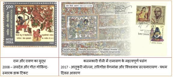 12वीं शताब्दी के कवि जयदेव की संस्कृत कृति गीत गोविन्द पर 2008 में ग्यारह टिकट जारी हुए. इनमें विष्णु के दशावतार के लघु चित्र श्लोक के साथ दिखाये गये. इनमें से एक पर राम और रावण के युद्ध का दृश्य और रामवतार की महिमा पर श्लोक उद्धृत है.