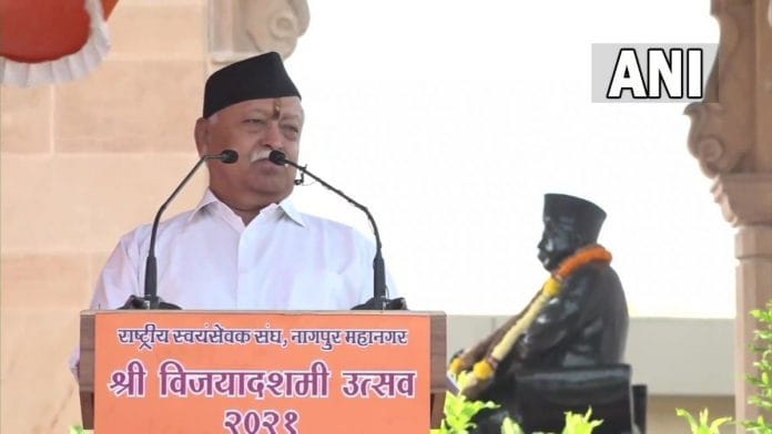आरएसएस प्रमुख मोहन भागवत ने अपने वार्षिक दशहरा संबोधन में कहा, हमारी सामाजिक चेतना अब भी जाति आधारित भावनाओं की ओर झुकाव रखती है.
