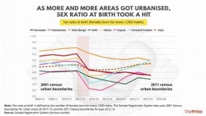 इकोनॉमी एंड पॉलिटिकल वीकली (EPW) में प्रकाशित एक लेख, ‘सेक्स रेशियो एट बर्थ इन अर्बन इंडिया’ में लेखकों ने उल्लेख किया कि शहरीकरण और जन्म के समय लिंग अनुपात एक दूसरे से नकारात्मक रूप से जुड़े थे.