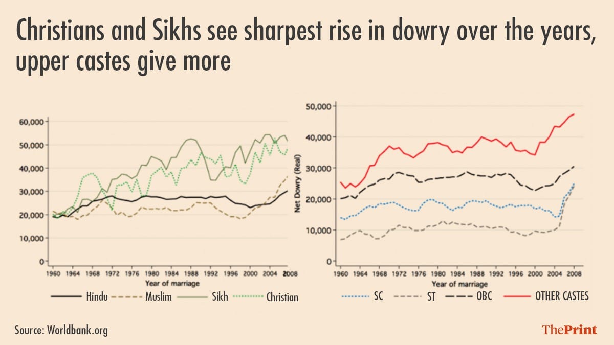 इसी तरह, एक बहुसंख्यक राज्य पंजाब में इंफ्लेमेटरी ट्रेंड सिखों के बीच दहेज लेन-देन में वृद्धि को दर्शाता है.