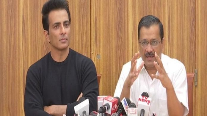 Delhi CM Arvind Kejriwal and actor Sonu Sood address a joint press conference