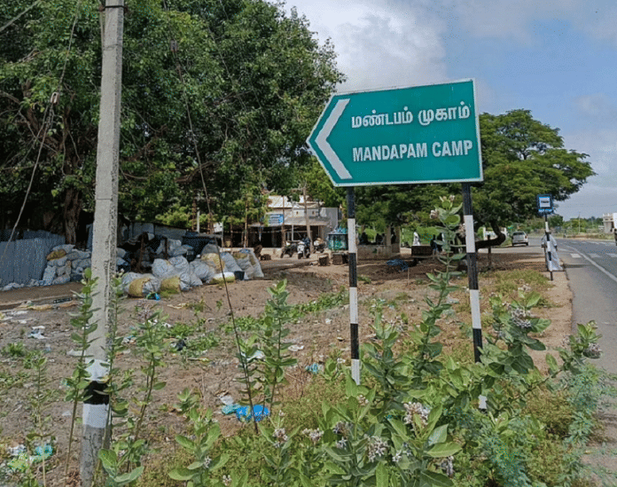 कड़ी निगरानी के बीच मंडपम कैंप की ओर जाने वाली वाली सड़क पर ताज़े चिकन से लेकर गोल्ड लोन तक सब कुछ उपलब्ध है. बुधवार की उस सुबह, श्रीलंकाई तमिल कैंप के गेट के अंदर और बाहर आ जा रह हैं: कुछ स्ट्रिंग बीन्स के बैग ले जा रहे हैं, कुछ अन्य निर्माण स्थलों पर काम करने के लिए या लगभग आधे घंटे की दूरी पर स्थित रामनाथपुरम के साप्ताहिक बाजार से सब्जियां खरीदने के लिए गेट से बाहर निकल रहे हैं. कैंप में रहने वाले लोग बसों और ट्रेनों के जरिए बाहरी दुनिया से संपर्क बनाये रखते हैं हैं. माथी कहतीं हैं मंडपम ‘एक प्रसिद्ध पड़ाव है.‘
