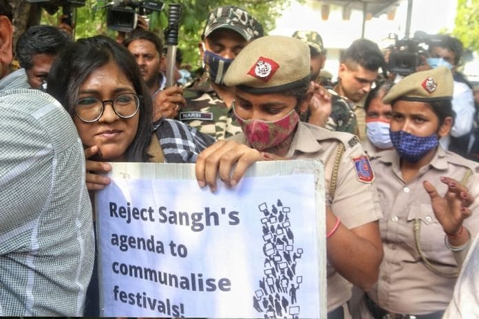 प्रदर्शन कर रहे विद्यार्थी पुलिस मुख्यालय के निकट एकत्रित हुए थे और उन्होंने आरएसएस से संबद्ध एबीवीपी के सदस्यों की गिरफ्तारी की मांग की.