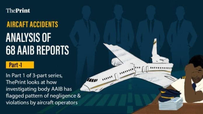 दिप्रिंट ने 2012 से अब तक की 68 एएआईबी फाइनल रिपोर्ट्स का विश्लेषण किया. यह तीन-पार्टी की सीरीज़ की पहली रिपोर्ट है, जिसमें एयरलाइन ऑपरेटरों और फ्लाइट ट्रेनिंग ऑर्गनाइजेशंस की बार-बार की गई गड़बड़ियों को उजागर किया गया है.