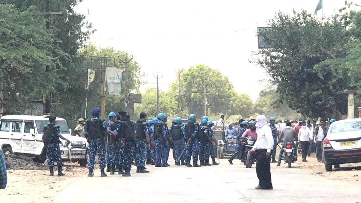 टप्पल/अलीगढ़: टप्पल गांव में हजारों की संख्या में पुलिस और सीआरपीएफ के जवान तैनात हैं. इस इलाके में दिल्ली, फरीदाबाद और गुरुग्राम के नंबर प्लेट्स वाली गाड़ियों की लाइन लगी हुई है. मुंह पर रुमाल बांधे युवक गलियों से जय श्रीराम के नारे लगाते हुए आ-जा रहे हैं. पुलिस चौंकन्नी है. बीच–बीच में युवकों का ये जत्था लाठी लेकर तैनात जवानों से भिड़ भी रहा है.