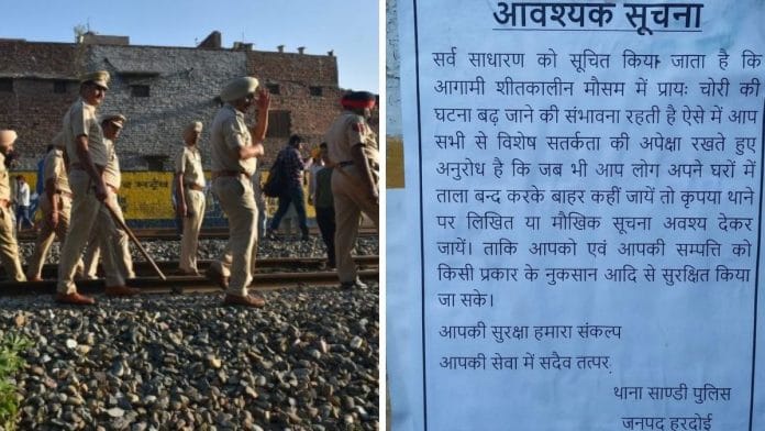 दिप्रिंट से बातचीत में हरदोई के एडिशनल एसपी अनिल कुमार ने इसे सांडी पुलिस थाना द्वारा शुरू की गई एक पहल बताया. उन्होंने कहा, ‘इसे पायलट प्रोजेक्ट के तौर पर समझें. यह पोस्टर लोगों के घरों की हिफाजत के लिए चस्पा कराए गए हैं. कोई अगर पुलिस को इन्फाॅर्म करके जाएगा तो उसके घर के बाहर पुलिस ज्यादा गश्त करेगी ताकि चोरी न हो सके.’