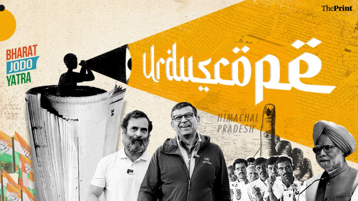 नई दिल्ली: संसद का शीतकालीन सत्र शुरू हो गया है और इस बीच उर्दू प्रेस द्वारा की जा रही कांग्रेस की कवरेज ‘भारत जोड़ो यात्रा’ और जानेमाने अर्थशास्त्री और भारतीय रिजर्व बैंक (आरबीआई) के पूर्व गवर्नर रघुराम राजन की इसमें भागीदारी पर केंद्रित रही.
