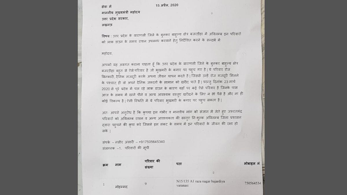 लेनिन रघुवंशी ने पत्र में कई बुनकरों के नाम का जिक्र किया है. ये वो परिवार हैं जो भुखमरी के कगार पर हैं. मालूम हो कि बजरडीहा बुनकर बहुल क्षेत्र है. यहां बुनाई के अलावा रोजगार के नाम पर और कुछ नहीं है.