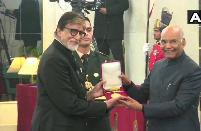 नई दिल्ली: राष्ट्रपति रामनाथ कोविंद ने अभिनेता अमिताभ बच्चन को दादा साहेब फाल्के पुरस्कार से सम्मानित किया . रविवार को जब अमिताभ फिल्मी दुनिया का सर्वोच्च पुरस्कार लेने राष्ट्रपति भवन पहुंचे तब उनकी पत्नी जया और बेटे अभिषेक बच्चन साथ थे.