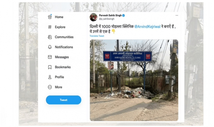 पश्चिमी दिल्ली लोकसभा सांसद और बीजेपी के सदस्य प्रवेश वर्मा ने बृहस्पतिवार को वो तस्वीर ट्विटर पर इस संदेश के साथ शेयर की: ‘केजरीवाल सरकार ने दिल्ली में 1,000 मोहल्ला क्लीनिक्स बनवाए हैं, ये उनमें से एक है’. उसके बाद से वर्मा की पोस्ट को 1,800 बार रीट्वीट किया गया है, और 6,200 बार ‘लाइक’ किया गया है.