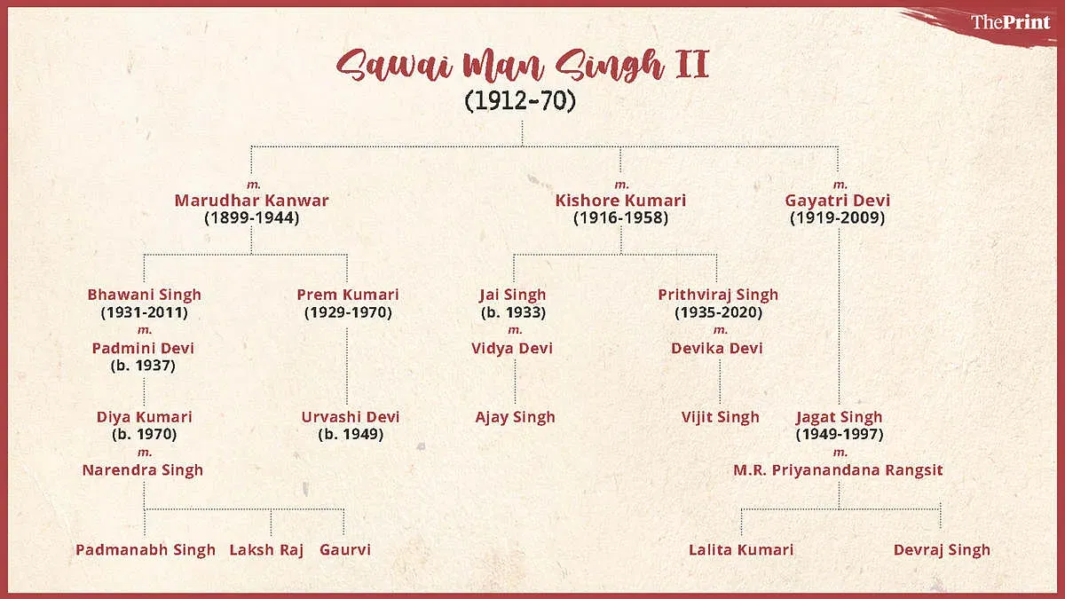 जयपुर शाही परिवार का वंश | ग्राफिक: दिप्रिंट टीम