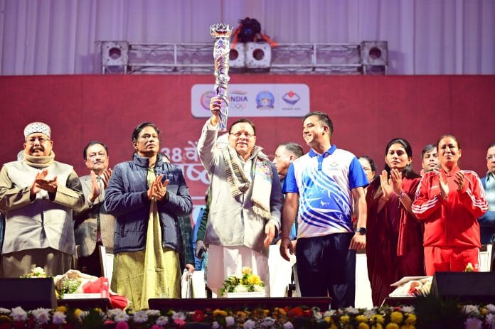 रविवार को महाराणा प्रताप स्पोर्ट्स कॉलेज, रायपुर, देहरादून में आयोजित कार्यक्रम में मुख्यमंत्री ने कहा कि आज का दिन उत्तराखंड के खेल इतिहास में एक ऐतिहासिक दिन है. उन्होंने राष्ट्रीय खेलों की मेजबानी का अवसर देने के लिए प्रधानमंत्री नरेंद्र मोदी का संपूर्ण उत्तराखंड वासियों की ओर से धन्यवाद किया.