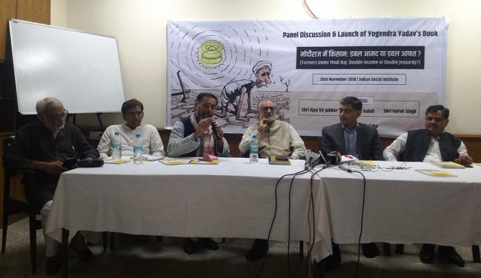 सोमवार को योगेंद्र यादव की किताब ‘मोदी राज में किसान: डबल आमद या डबल आफत’ का दिल्ली में लोकार्पण हुआ. इस मौके पर योगेंद्र यादव ने किताब पर चर्चा करते हुए मोदी सरकार की कृषि नीतियों पर अपनी बातें रखीं और सरकार के कृषि और किसान संबंधी दावों को झूठा बताया.