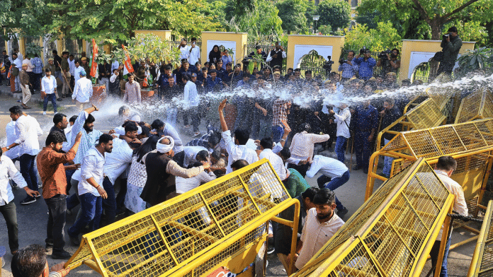 जयपुर: राजस्थान यूथ कांग्रेस के कार्यकर्ताओं ने गुरुवार को मुख्यमंत्री निवास के बाहर प्रदर्शन किया. उनका आरोप था कि राज्य में “वोट चोरी”, किसानों की समस्याएं और बेरोज़गारी बढ़ रही है. प्रदर्शन को रोकने के लिए पुलिस ने वाटर कैनन का इस्तेमाल किया.