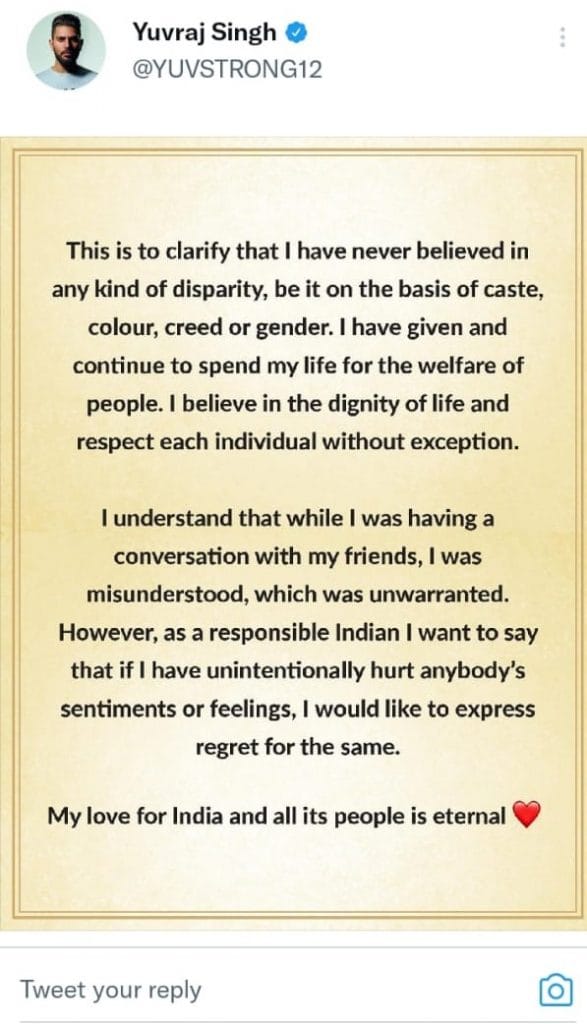 टिप्पणियों पर माफी मांगते हुए ट्वीट किया था कि, ‘मैं समझता हूं कि जब मैं अपने दोस्तों के साथ बातचीत कर रहा था, तो मुझे गलत समझा गया, जो अनुचित था. हालांकि, एक जिम्मेदार भारतीय के रूप में मैं कहना चाहता हूं कि अगर मैंने अनजाने में किसी की भावनाओं या भावनाओं को ठेस पहुंचाई है, तो मैं उसके लिए खेद व्यक्त करना चाहूंगा.’