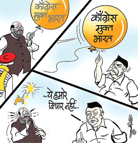 जोशी बताते हैं कि भाजपा और आरएसएस के बीच मतभेद उत्पन्न हुए हैं। आरएसएस प्रमुख ने हाल ही में कहा था कि बीजेपी के बहुप्रतीक्षित वाक्यांश ‘कांग्रेस-मुक्त भारत’ संघ की भाषा का हिस्सा नहीं था।
