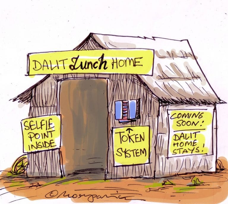 हेमंत मोरपारिया, राजनीतिज्ञों द्वारा दलितों संग भोजन करने के पीछे के मकसद (दलितों संग तस्वीरें लेने) को उजागर करते हुए, इन नेताओं का मजाक उड़ाते है, यहाँ तक कि इस समय पूरा दलित समुदाय देश में उद्दंड़ता और अत्याचार को लेकर परेशानी का सामना कर रहा है।