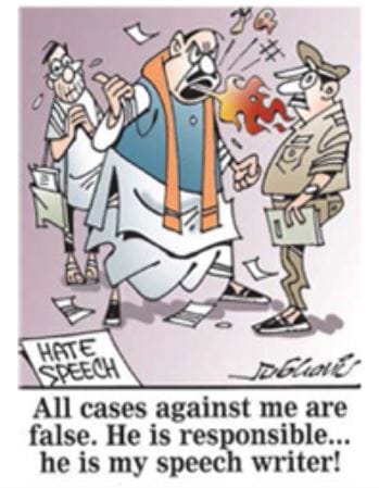 एशियन ऐज में सुभानी बताती है कि भारत में जब घिनौने भाषणों की बात आती है तो राजनेता अपने आप को छोड़कर,लगभग हर किसी को दोषी ठहराते हैं।