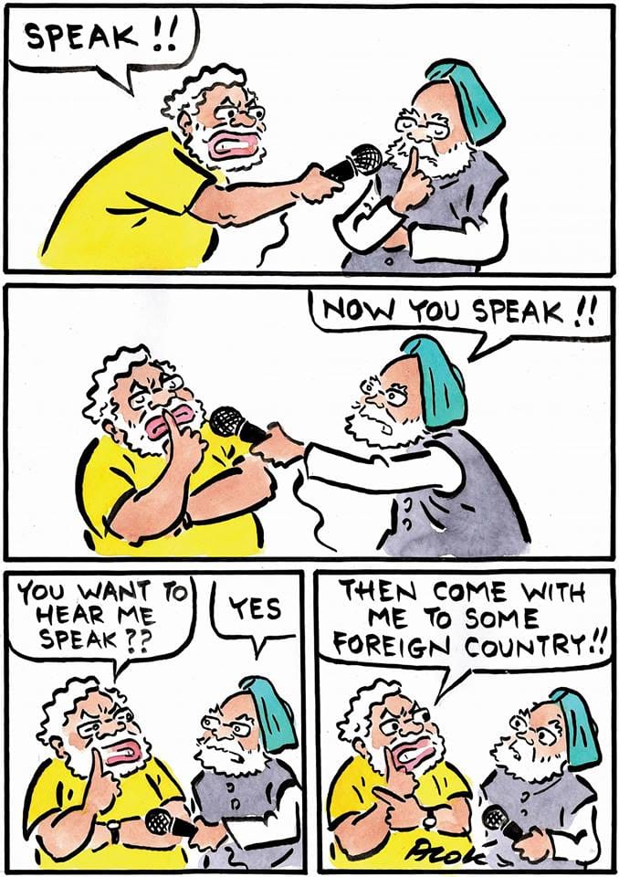आलोक निरंतर, भारत के नए ‘मूक प्रधान मंत्री’ पर मजाक उड़ाते हैं। कठुआ और उन्नाव बलात्कार के मामलों के बारे में बोलने में प्रधानमंत्री के विलम्ब की आलोचना पूर्व प्रधानमंत्री मनमोहन सिंह ने भी की है, जिन्हें आम तौर पर एक निस्तब्ध नेता के रूप में चित्रित किया गया था।