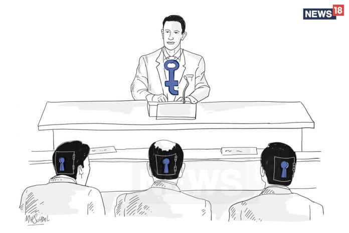 न्यूज़ 18 में मीर सुहैल, फेसबुक सीईओ मार्क जकरबर्ग की वाशिंगटन डीसी में सांसदों के समक्ष हाजिरी की चित्र के माध्यम से व्याख्या करते हैं| फेसबुक का अपने डाटा सुरक्षा की खामियों को ठीक करने का प्रयास शायद बहुत कम और बहुत विलम्ब से किया गया प्रयास था, वो भी ये ध्यान में रखते हुए कि वो पहले से ही अपने उपयोगकर्ताओं के बारे में लगभग हर जानकारी रखते हैं|