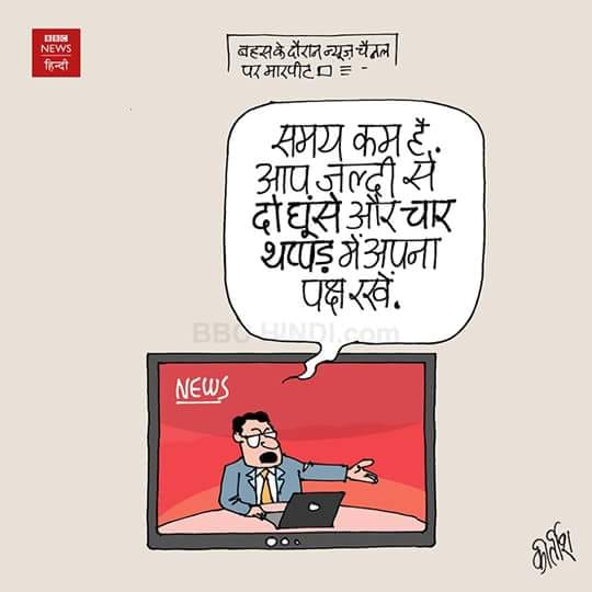 कीर्तिश भट्ट ने भारतीय टेलीविजन पर इस समय होने वाली प्राइम टाइम की बहस पर तंज किया है जहां पर टेलीविज़न बहस की बजाय वास्तविक झगड़े हो रहे हैं ।