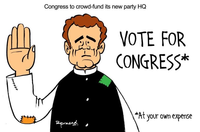 कांग्रेस नई दिल्ली में अपने नए पार्टी मुख्यालय को बनाने के लिए जन-सहयोग की योजना बना रही है। आर .प्रसाद इस तथ्य का मज़ाक उड़ाते हैं कि कांग्रेस के लिए अब मतदान भी अतिरिक्त खर्चों के साथ आता है।