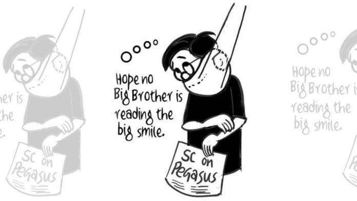 आज के फीचर कार्टून में ई.पी. उन्नी पेगासस विवाद में बुधवार को आए सुप्रीम कोर्ट के आदेश पर टिप्पणी कर रहे हैं. कोर्ट ने पेगासस जासूसी विवाद की ‘पूर्ण जांच’ करने के लिए एक तकनीकी समिति का गठन करने के आदेश दिए हैं.