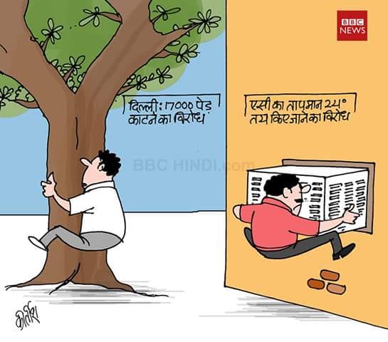 कीर्तिश भट्ट दिल्ली के चल रहे चिपको पल को दर्शाते है जिसमें सुझाव देते है कि लोग एक ऐसा आंदोलन कर सकते हैं कि सरकार एसी के लिए तापमान सीमा तय कर सकती है।