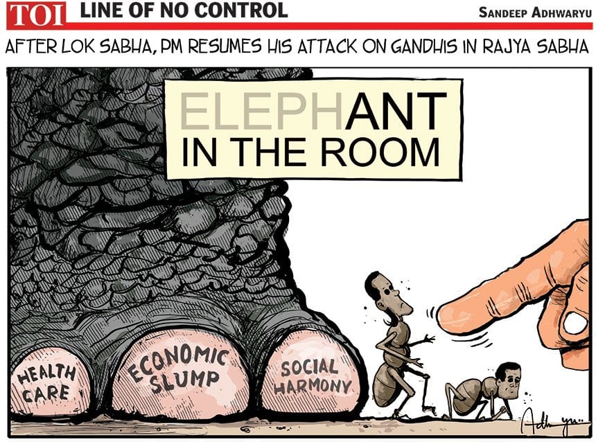 संदीप अध्वर्यु प्रधानमंत्री नरेंद्र मोदी के लोकसभा भाषण पर कटाक्ष करते हैं. जहां उन्होंने कांग्रेस पर जमकर निशाना साधा, लेकिन स्वास्थ्य सेवा के बड़े मुद्दों और आर्थिक संकट को बमुश्किल संबोधित किया.