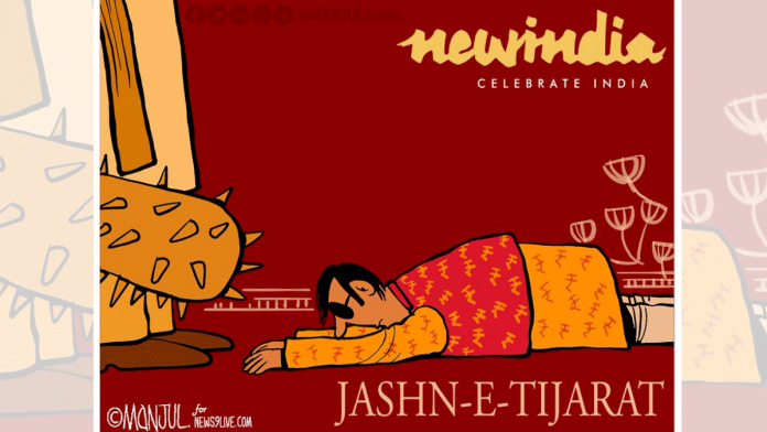 आज के फ़ीचर्ड कार्टून में मंजुल ने फैब इंडिया के नए दीवाली थीम वाले विज्ञापन पर तंज़ कसा है. इस विज्ञापन अभियान ‘जश्न ए रिवाज़’ को भारतीय संस्कृति के लिए ‘सम्मान‘ के तौर पर बताया जा रहा था लेकिन कुछ सोशिल मीडिया यूजर्स इसकी आलोचना की. इनमें बीजेपी के सांसद तेजस्वी सूर्या भी शामिल थे, जिन्होंने इसे ‘हिंदू त्यौहारों का जानबूझ कर अब्राहमीकरण किया जाना’ बताया. इसके बाद इस विज्ञापन को हटा लिया गया.