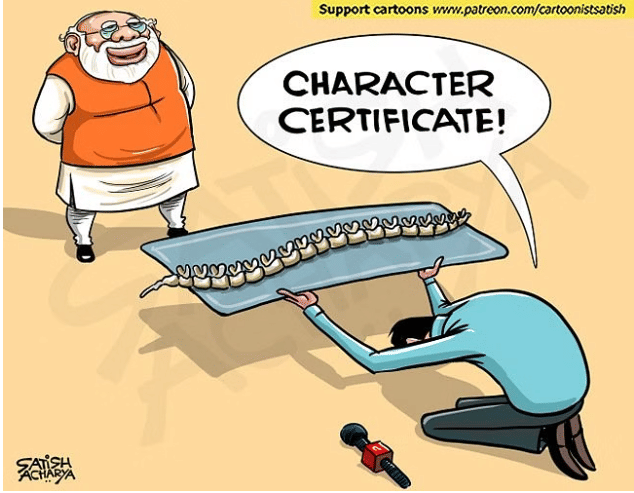 आज के विशेष रूप से चित्रित कार्टून में, सतीश आचार्य एक विवादास्पद आदेश पर टिप्पणी कर रहे हैं जिसमें प्रधानमंत्री नरेंद्र मोदी की हिमाचल प्रदेश यात्रा को कवर करने के लिए पत्रकारों को ‘चरित्र प्रमाण पत्र’ जारी के लिए कहा गया था. हालांकि इसे बाद में वापस ले लिया गया.