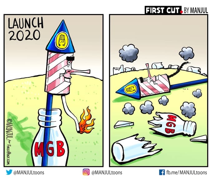 मंजुल बिहार में सरकार बनाने के लिए राजद के नेतृत्व वाले महागठबंधन या महागठबंधन की विफलता पर कटाक्ष करते हैं.