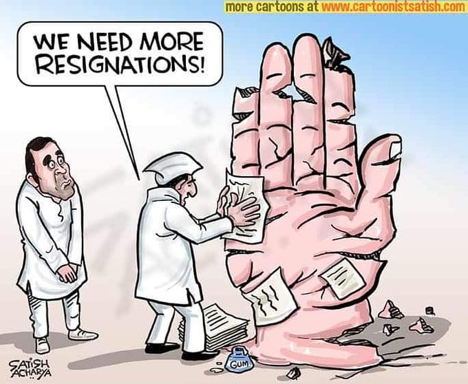 सतीश आचार्य ने लोकसभा चुनाव के बाद कांग्रेस के घटनाक्रम पर मज़ाक उड़ाया है. पार्टी अध्यक्ष सहित कई कांग्रेस नेताओं ने इस्तीफे की पेशकश की है.