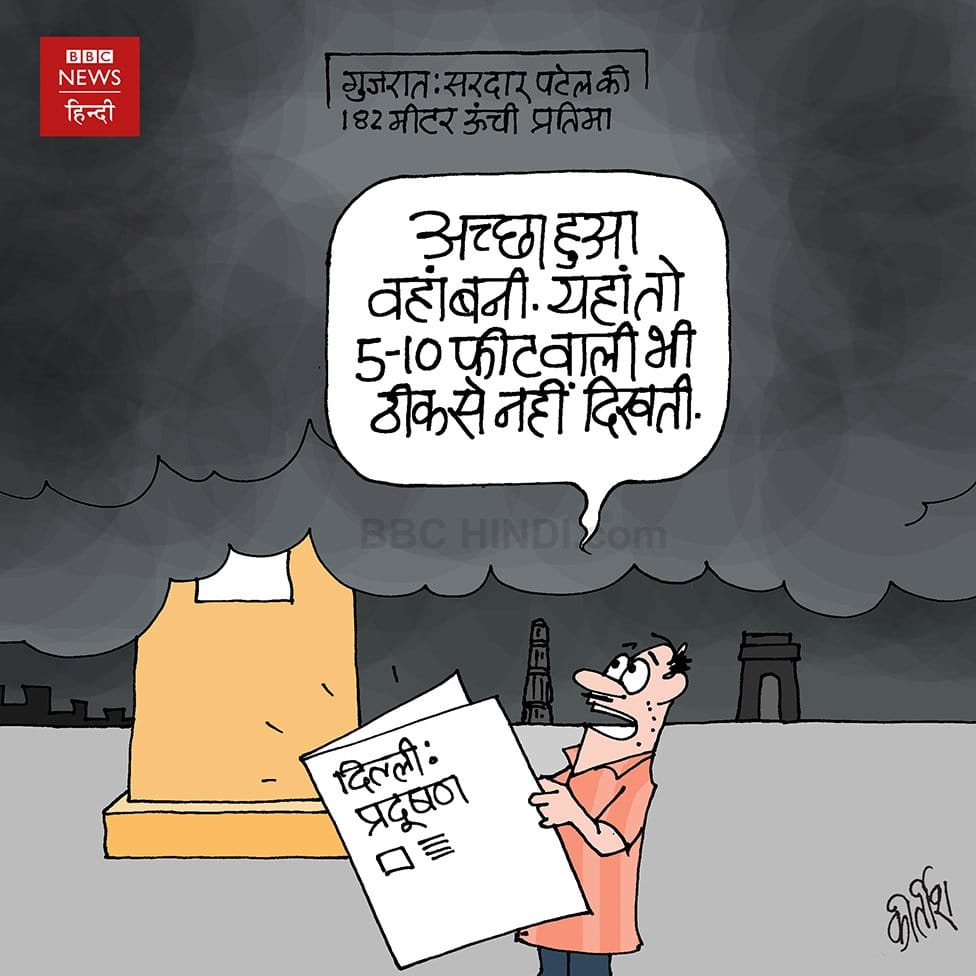 बीबीसी हिंदी में कीर्तीश भट्ट सोचते हैं कि अगर सरदार पटेल की प्रतिमा दिल्ली में स्थापित हुई होती तो स्मॉग की वजह से अदृश्य हो जाती.