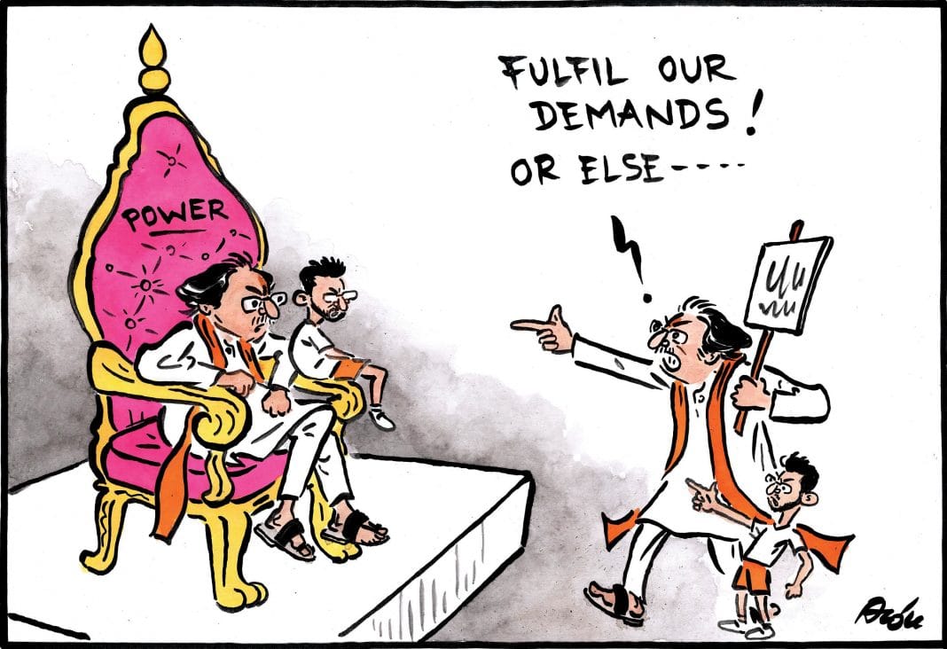 आलोक निरंतर ने शिवसेना प्रमुख उद्धव ठाकरे के द्वारा महाराष्ट्र सरकार का किसानों के बीमे के भुगतान न करने के मामले में हाल ही में हुए विरोध प्रदर्शन को दर्शाते हैं, जबकि उनकी पार्टी सत्तारूढ़ भाजपा के साथ गठबंधन में है.