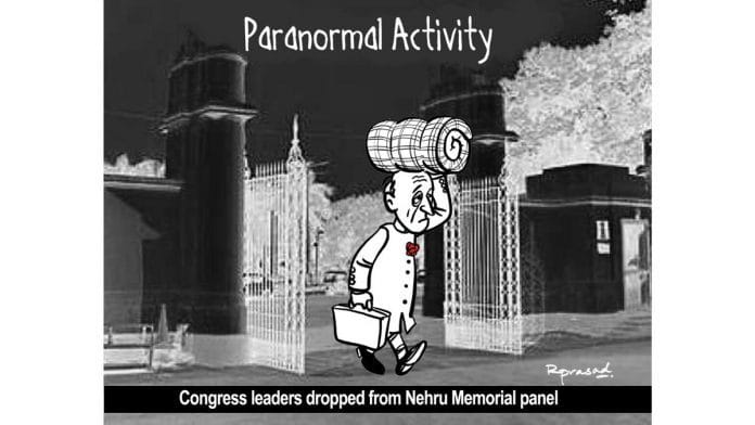 आज के फीचर कार्टून में आर प्रसाद नेहरू संग्रहालय और पुस्तकालय सोसाइटी से कांग्रेस नेताओं को बाहर किए जाने को चित्रित कर रहे हैं.