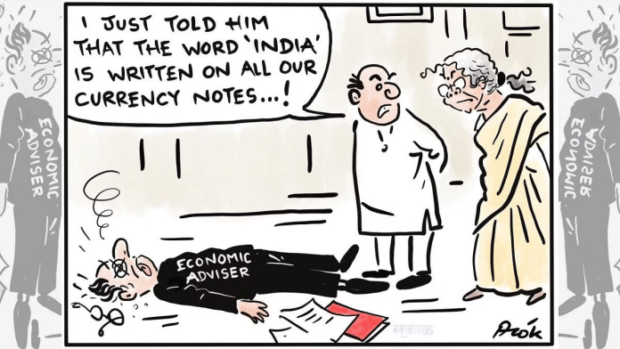 ईपी उन्नी के कार्टून में जिक्र है कि सरकार ‘इंडिया’ का नाम बदलकर ‘भारत’ करने की योजना बना रही है.