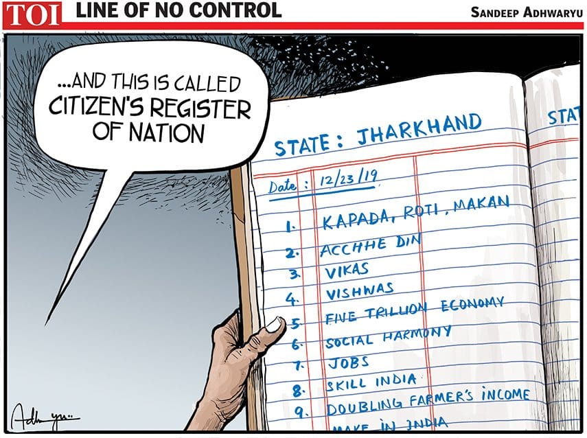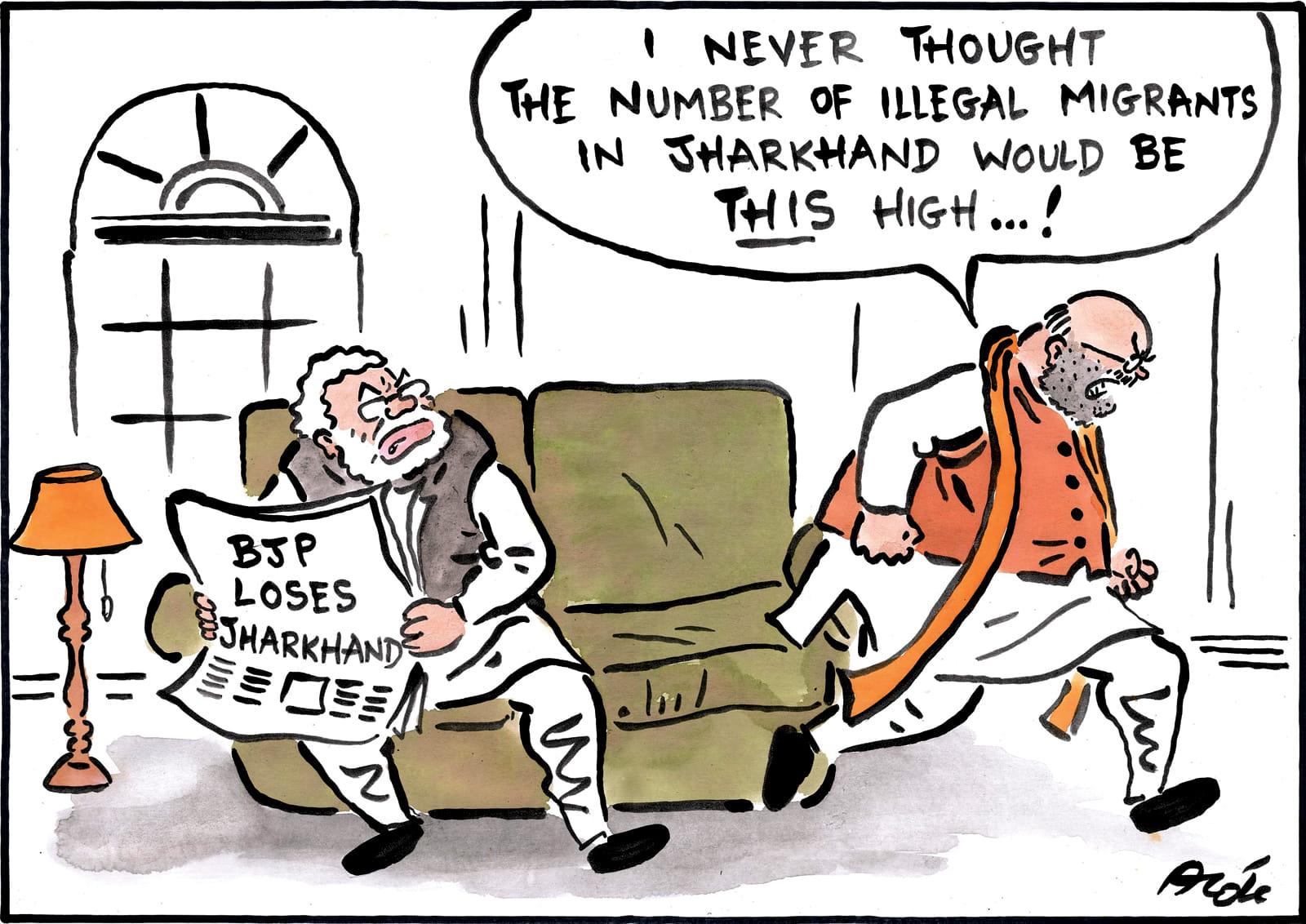 आज के फीचर कार्टून में मंजुल भाजपा को पड़ी दोहरी मार को दर्शाते हैं. पहले भाजपा को महाराष्ट्र में शिवसेना और फिर झारखंड में जेएमएम ने सत्ता से बाहर का रास्ता दिखाया. भगवा पार्टी के लिए यह दोहरी मार है.